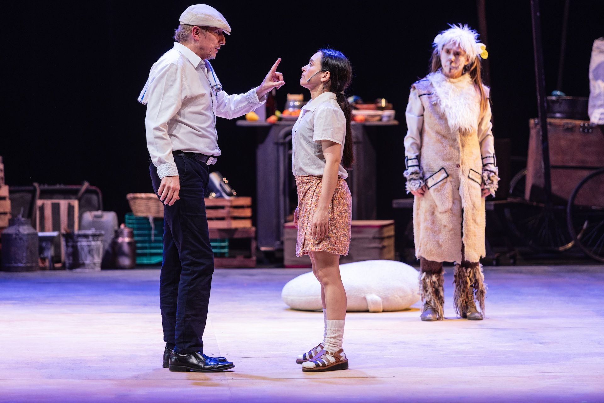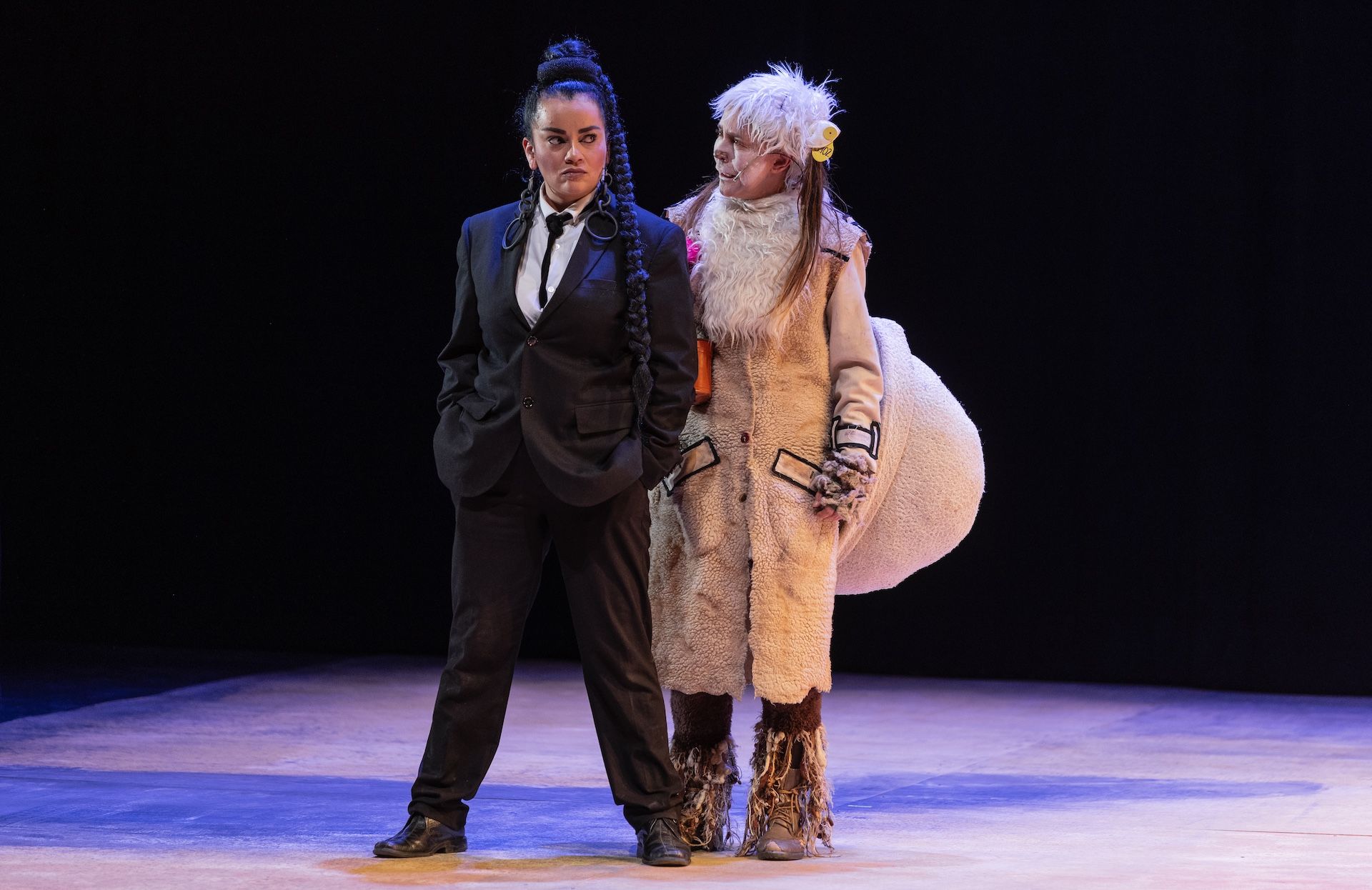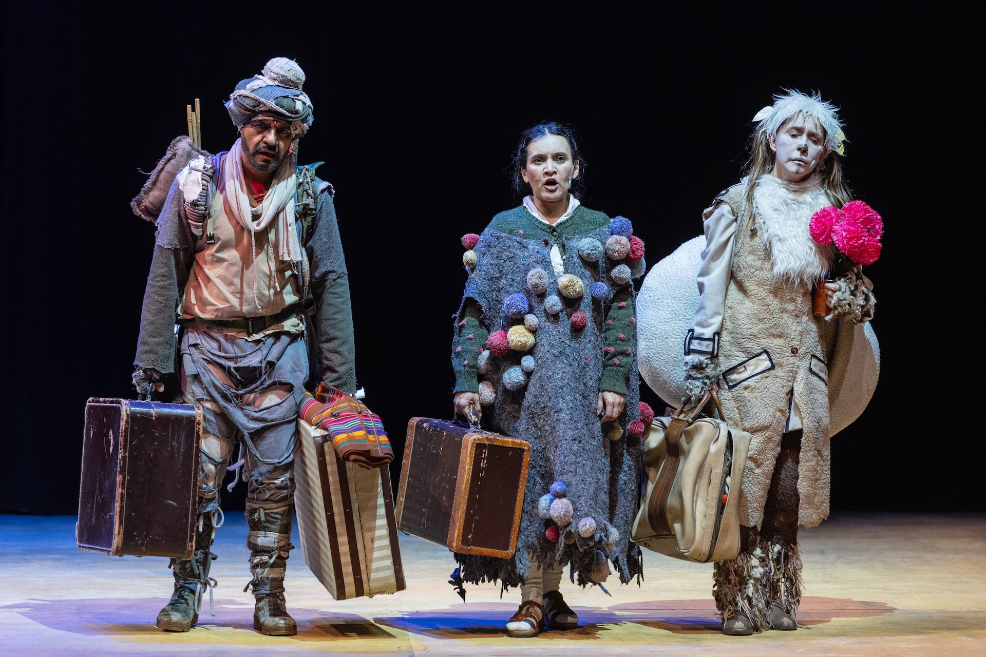 En ese entramado de nombres y destinos, la obra hace visible la idea de que toda huida es, en esencia, una búsqueda de refugio y pertenencia; pero en el universo de Historia de una oveja, incluso el refugio se vuelve adverso. El hogar, como cuerpo y memoria, puede ser arrebatado en cualquier momento bajo el capricho de quien detenta el poder y decide sobre la vida de otros. Una de las conclusiones más crueles y contundentes de la obra es que, si te quedas en casa, te matan. La sentencia se materializa en la reiterada orden del patrón de llevarse a la madre de Berenée, una oveja que acaba de parir y que, tras cumplir su función de reproducción, queda destinada al alimento o al comercio. El poder opera como máquina de consumo, devora a quienes produce. Lo mismo ocurre con el abanico de personajes oponentes —El Muñeco, La Mandadera Felicia, Los Lobos—, figuras que condensan la violencia institucional, la complicidad servil y la amenaza latente de los paramilitares y caciques.